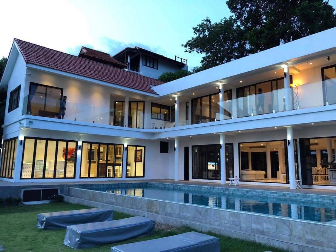 A six bedroom house with a panoramic sea view would likely be a luxurious and spacious property, designed to take full advantage of its stunning location. Here is a possible description of such a house: As you approach the house, you are immediately struck by its impressive size and modern design. The house has six bedrooms, each with its own en-suite bathroom and stunning views of the sea. The master bedroom is located on the top floor and features a king-size bed, a walk-in closet, and a luxurious bathroom with a soaking tub and a separate shower. Outside, the house is surrounded by lush landscaping and a manicured lawn. The balcony and terrace provide ample space for outdoor dining, lounging, and entertaining, while the private pool and hot tub offer the perfect place to relax and soak up the sun while enjoying the stunning sea view. Overall, this six bedroom house with panoramic sea view is a luxurious and impressive property that offers the ultimate in comfort, style, and relaxation.