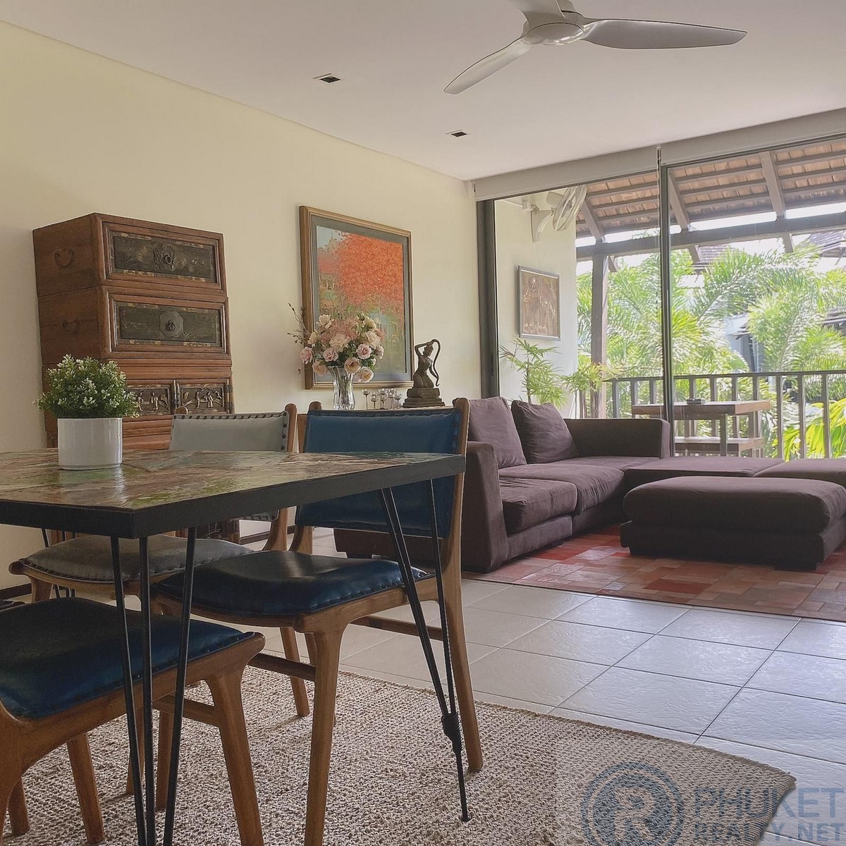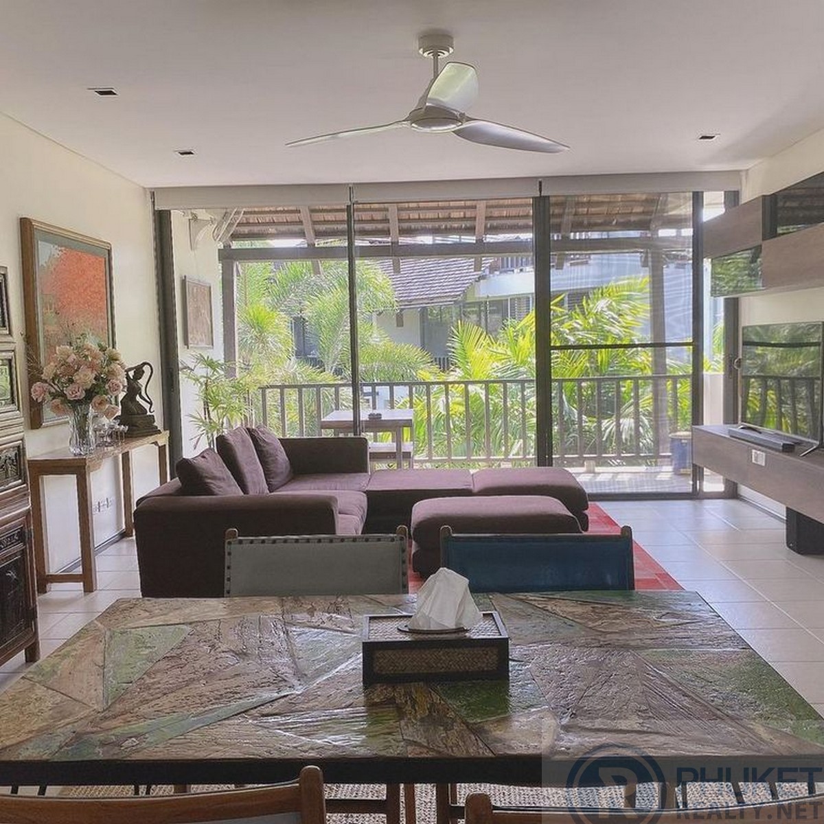 Hidden in a lush tropical garden, Bangtao Beach  is a residential estate of modern spacious condominiums, barely 200 meters away from Bangtao Beach, a magnificent, 8 kilometer-long crescent shaped bay with pure white sand. It offer two superb swimming pools and gymnasium facilities. Our tastefully decorated 120 sqm two-bedroom penthouse condominium is situated on the third floor, offers great views of the surrounding mountains and look down over the pool and gardens.