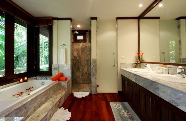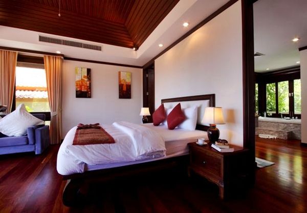 The villa has 3 large bedrooms, all with en-suite bathrooms. The two main bedrooms are on the upper level, overlooking Kata Beach and the private pool.