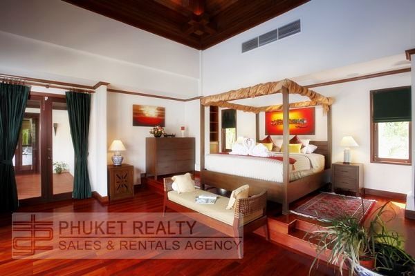 Master bedroom with adjacent dressing room and separate bathroom. King-sized 4-poster bed. 46 inch Samsung LEDTV. Fridge. Sliding doors open onto the pool.