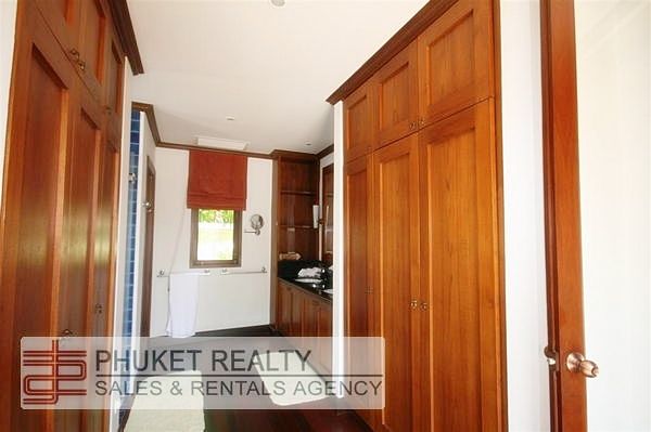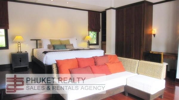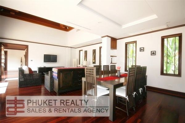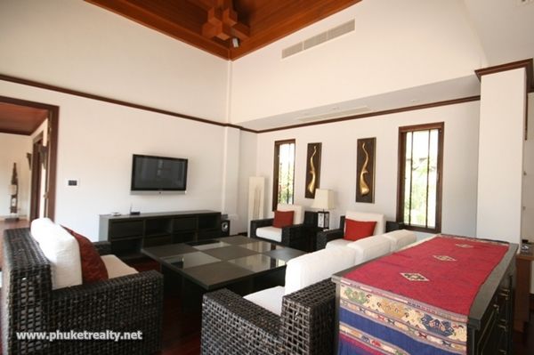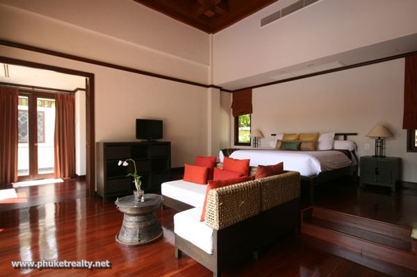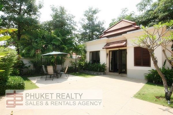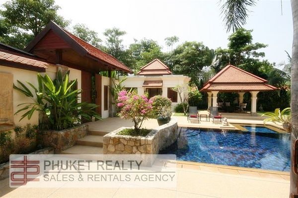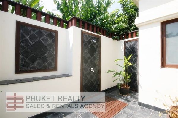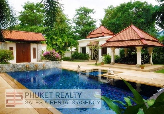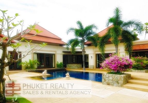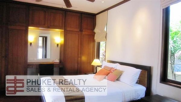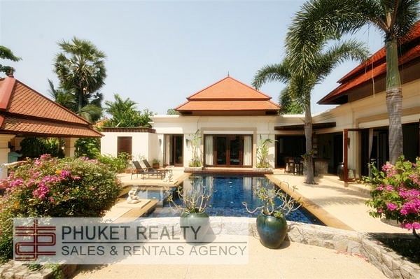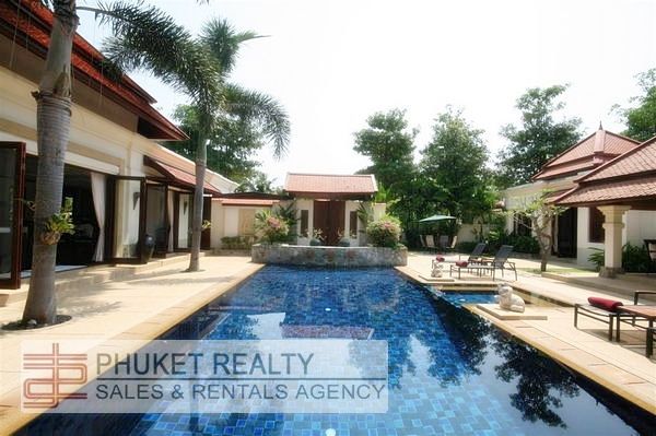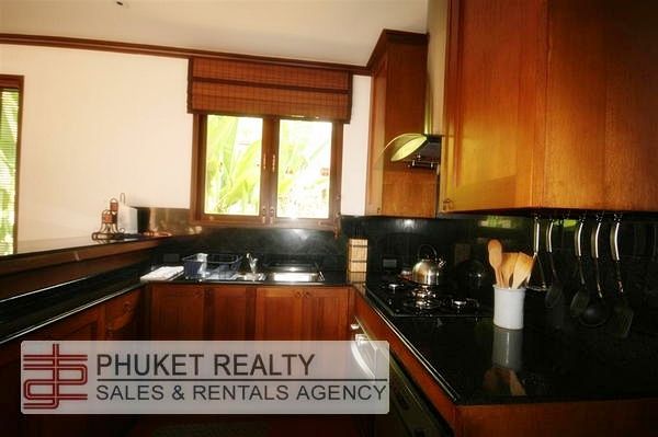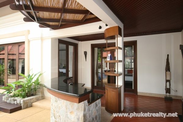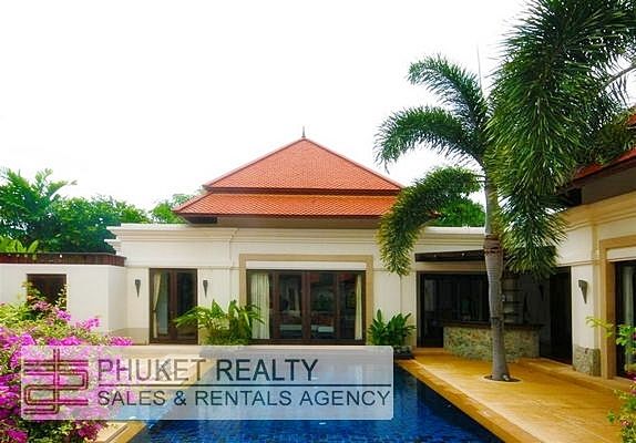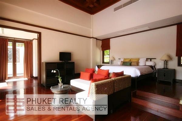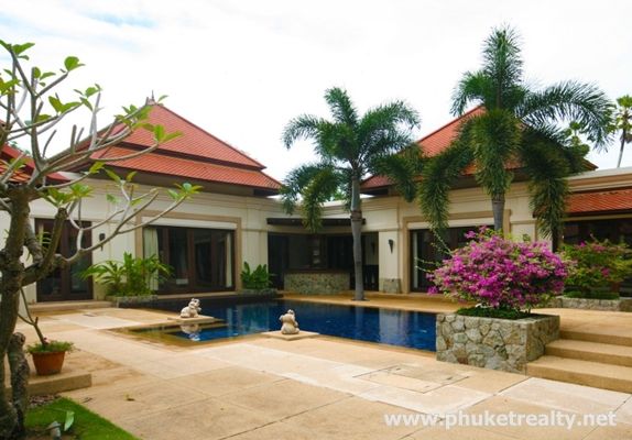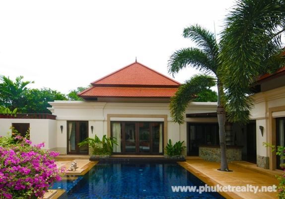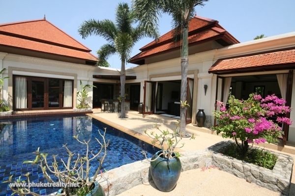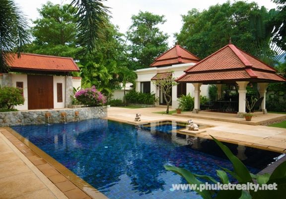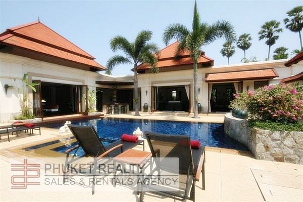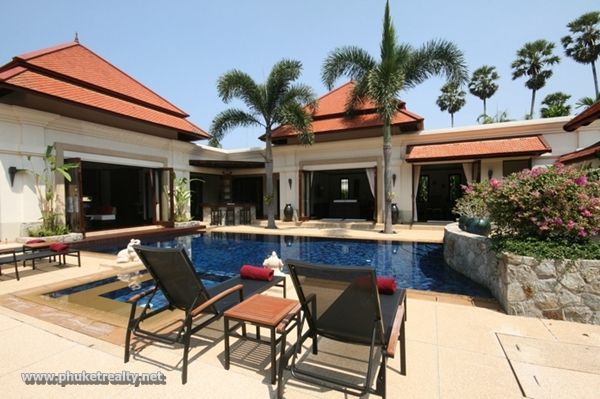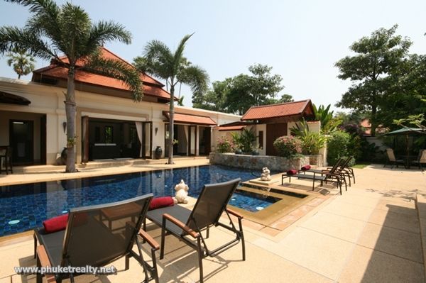 This luxurious private pool villa is situated close to Bangtao Beach on the west coast of Phuket near the entrance to the popular Laguna resort complex. The villa is on over 1000 sqm land plot, very well maintained and fully furnished. The villa features a separate lounge, dining room, open western kitchen and maids' quarters. All rooms open on to the pool, the main focus of the home via concertina glass and hardwood doors and beautifully landscaped gardens surrounded by high walls for privacy. The guest villa or 4th bedroom, is very well appointed with a sitting area and ensuite bathroom but fully self contained in a separate villa.