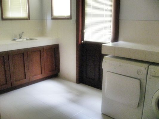 A huge central living area compromising an open dining and living room with pitched ceiling, overlooks the terrace, pool and gardens. The concertina glass doors running the length of this area, give access directly onto the pool terrace, and when opened create that special tropical ambiance for entertaining.