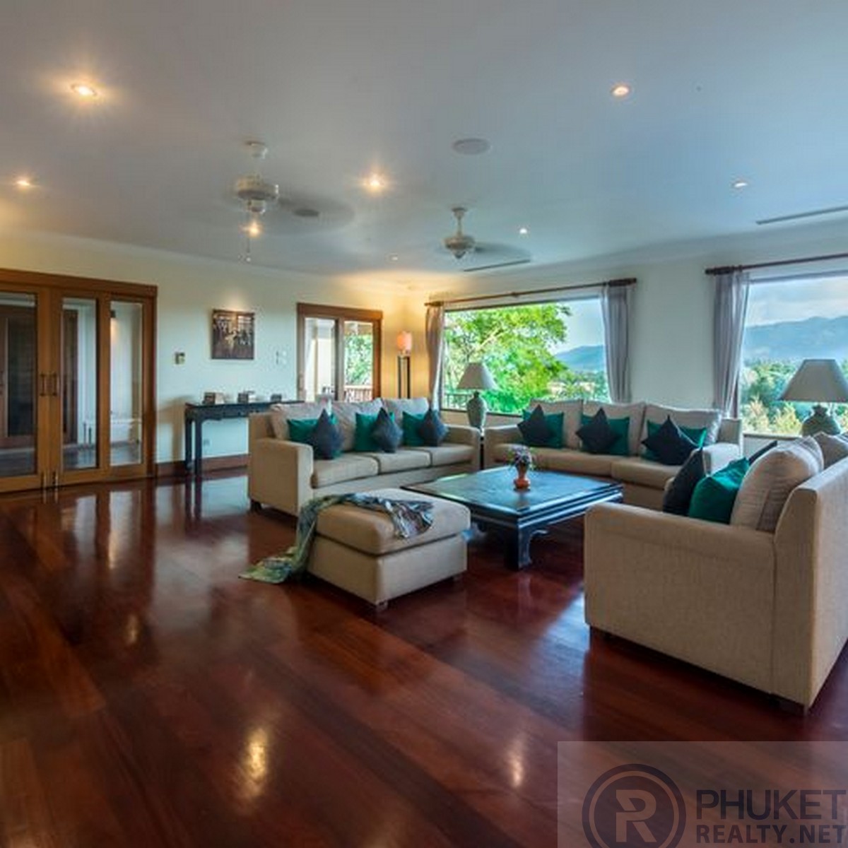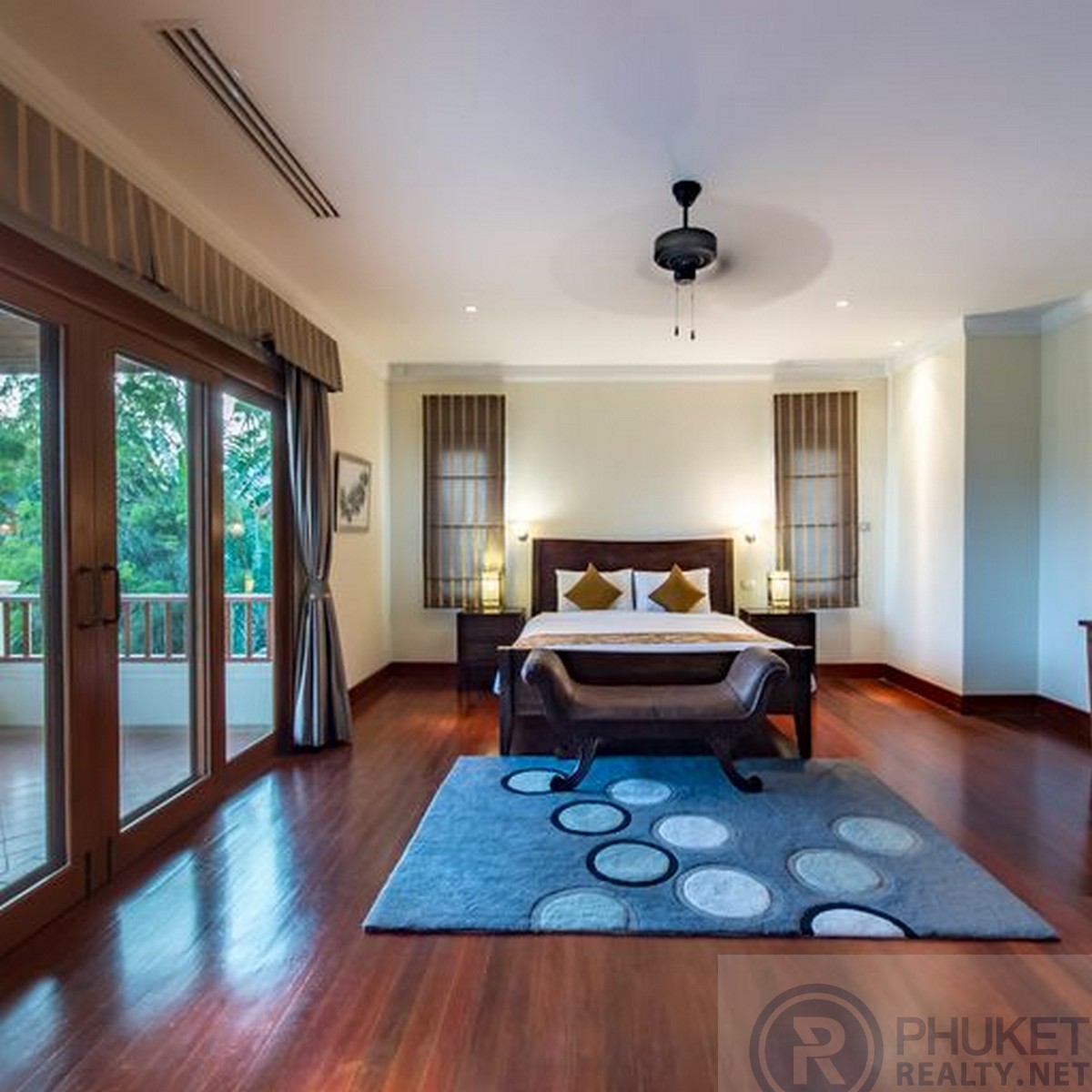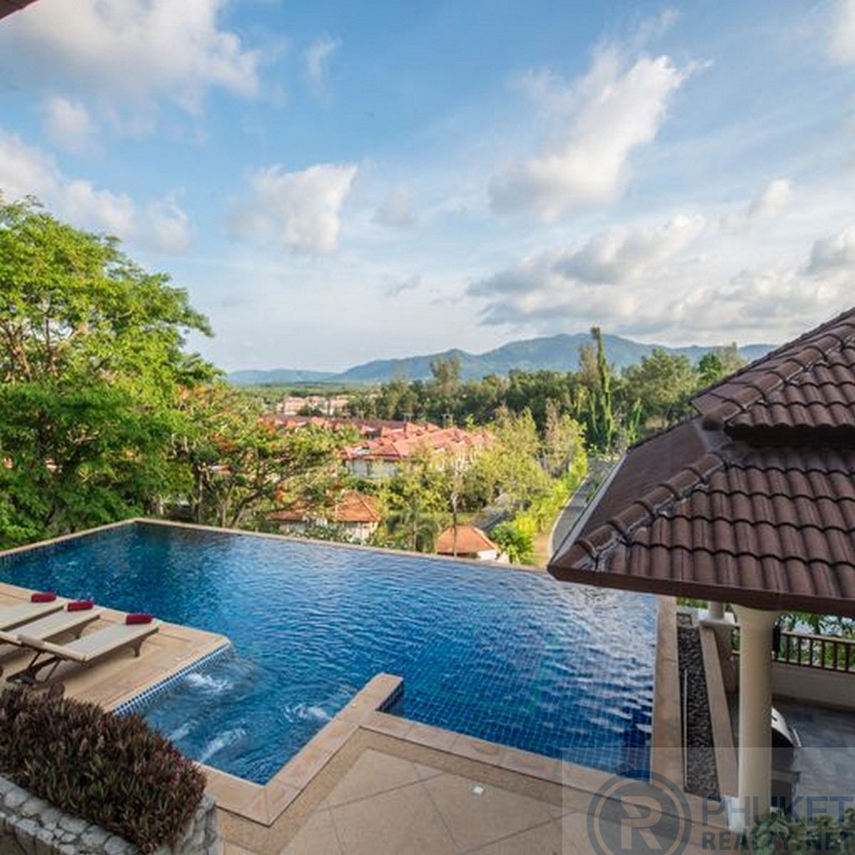 This marvelously located Layan, Phuket villa is fully furnished, with a private pool that sits majestically overlooking the valley area of Bangtao, Laguna Golf course and a large lagoon. Consisting of five bedrooms and located only minutes to both the sandy Bangtao and Layan beaches, shopping, some of Phuket's finest eating establishments, local Thai restaurants and spas. The villa has its own over sized infinity edged swimming pool, with jacuzzi and large bar, dining and sala area at the end. An ideal location for family and friends to spend the day in complete privacy whilst enjoying the fabulous views. The villa is located within the secure gated estate of Lakewood Hills. This is a beautifully maintained village with lush tropical and floral gardens lining the roads and fully grown plants and trees that provide complete privacy between villas. Designed in a tropical modern style, making the most of the outdoors that flow into the large living areas. The villa has many private balconies from each bedroom, providing each individual their own private little getaway. The kitchen is over sized and fully fitted with all the western style conveniences including high-end black granite bench tops. The house has made use of high-end timbers for the doors, windows and floors. Further enhancing it's tropical feel. The home is entered from the large private, gated car-port, a flowing water feature leads you to the front doors, upon entering you are immediately welcomed by the outstanding views, cool breezes flowing through the house and serenity of its location. Available for short and long term rentals with a minimum of three days.