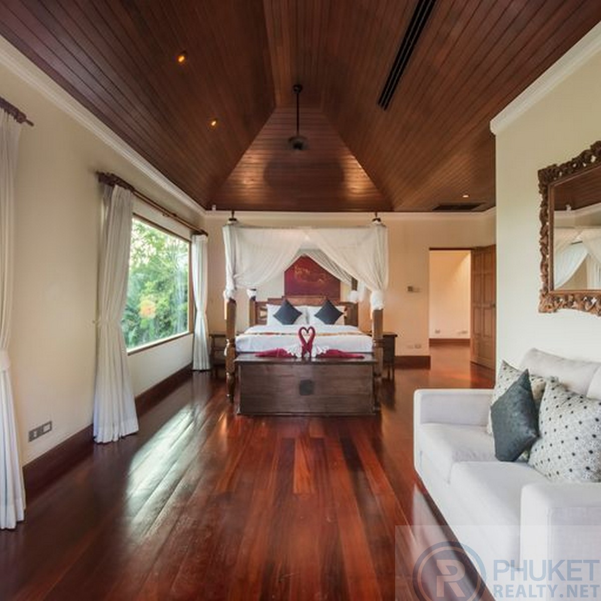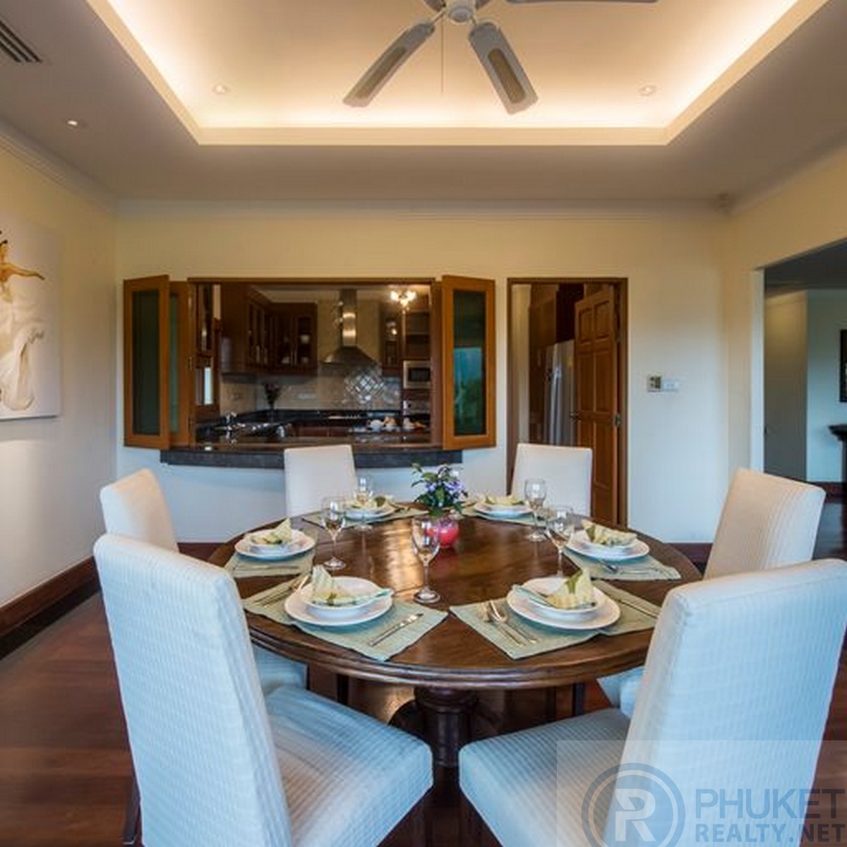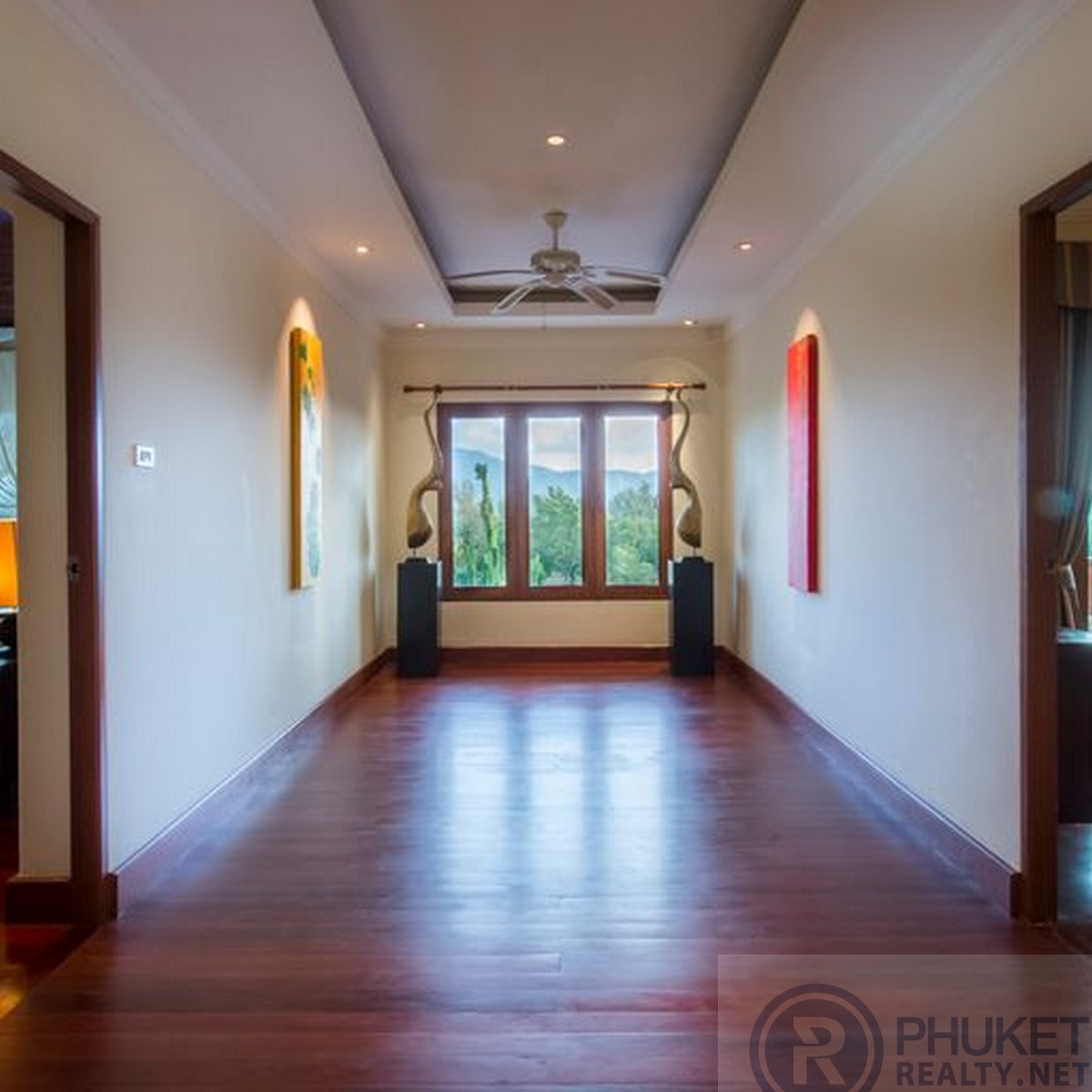 This marvelously located Layan, Phuket villa is fully furnished, with a private pool that sits majestically overlooking the valley area of Bangtao, Laguna Golf course and a large lagoon. Consisting of five bedrooms and located only minutes to both the sandy Bangtao and Layan beaches, shopping, some of Phuket's finest eating establishments, local Thai restaurants and spas. The villa has its own over sized infinity edged swimming pool, with jacuzzi and large bar, dining and sala area at the end. An ideal location for family and friends to spend the day in complete privacy whilst enjoying the fabulous views. The villa is located within the secure gated estate of Lakewood Hills. This is a beautifully maintained village with lush tropical and floral gardens lining the roads and fully grown plants and trees that provide complete privacy between villas. Designed in a tropical modern style, making the most of the outdoors that flow into the large living areas. The villa has many private balconies from each bedroom, providing each individual their own private little getaway. The kitchen is over sized and fully fitted with all the western style conveniences including high-end black granite bench tops. The house has made use of high-end timbers for the doors, windows and floors. Further enhancing it's tropical feel. The home is entered from the large private, gated car-port, a flowing water feature leads you to the front doors, upon entering you are immediately welcomed by the outstanding views, cool breezes flowing through the house and serenity of its location. Available for short and long term rentals with a minimum of three days.