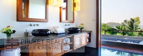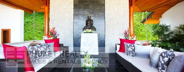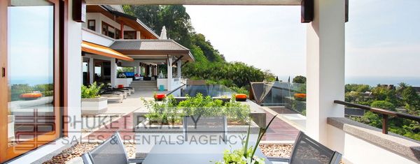 Grand luxury villa nestling on a private and secured hillside on the west coast of Phuket, an elegant style in a flourish of traditional Thai roofs. From a commanding height of 80 meters, Villa gives you the breath taking panorama of the Andaman Sea to the west, the towering 'Gothic' dome-like mountains of Phang Nga to the north and the lush green valley that reaches out toward them. The play of terraces and salas throughout the three levels of the Villa ensures that they capture the breeze from the ocean in all seasons, as guests lie back and watch the distant horizon just beyond the crystal clear water of the eighteen meter Infinity pool.