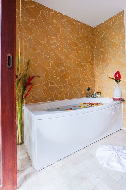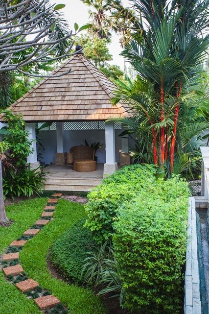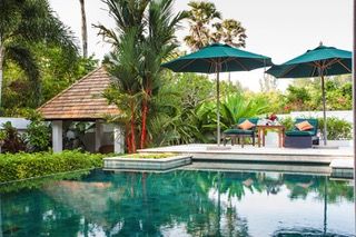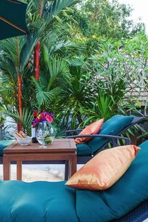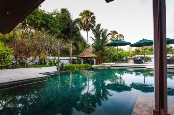 This stunning tropical-modern villa combines the simple elegance of Thai and Balinese design. Be captivated the moment you walk through the Balinese wooden doors, over the koy fish pond and enter Villa Thai Bali. Allow your gaze to wander over the luxuriously appointed living area out towards the sparkling private swimming pool, enveloped by lush tropical greenery. The large living space extends seamlessly outside to an open terrace perfect for cocktails parties and intimate dining. The outdoors are surrounded by lush tropical gardens, full of colour, fragrance and beauty. You cannot help but feel relaxed in these surroundings that promote pure peace, harmony and tranquility.