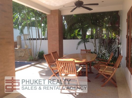 This private pool villa has three bedrooms, is on two stories and is located in peaceful area of Talang, Phuket, near to the world renowned Laguna Phuket and its equally famous beaches.