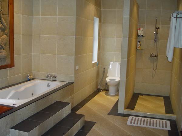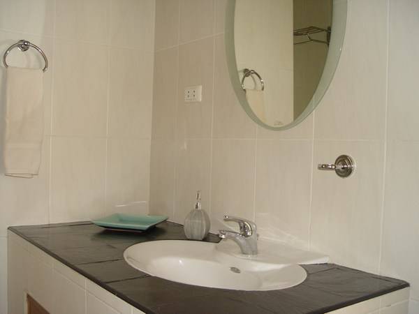 There are two bedrooms in the main villa, both with ensuited bathrooms. One has a single bed and the second bedroom has a king size bed. The second bedroom is large and spacious, matching the expectations of a Master bedroom. A Grand Bedroom is in a separated suite next to the main building. The Grand Bedroom has direct access to the pool and a spacious ensuited bathroom with its own bathtub and shower.