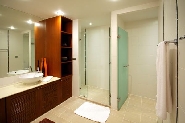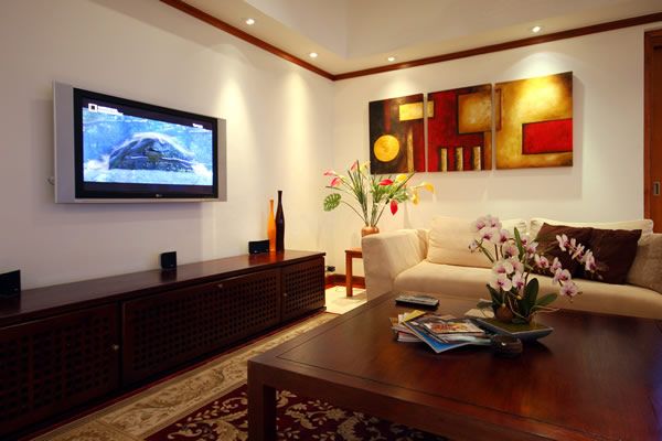 The lower level houses one master suite with king-sized bed and ensuite bathroom with separate toilet and shower areas in addition to a whirlpool bath. The second bedroom has a king-sized bed and a large private terrace. The third bedroom has twin beds and ensuite bathroom with shower.