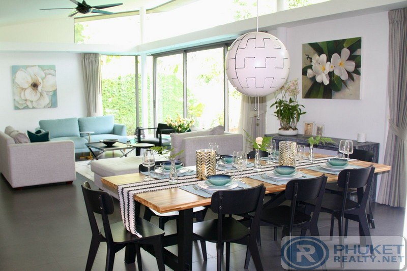 Modern lines combining indoor and outdoor living with privacy and seclusion in a wonderful tropical garden setting. Located only fifteen minutes from the airport and adjacent to the Laguna Village resort and the Sheraton and Banyan Tree Hotels. This 4 bedroom and 3 bathroom luxury garden villa offers a wonderful lifestyle with total privacy and exclusivity and superb value for money. In 2009 extensions and upgrading of materials were made to the entire house, including two additional rooms, a media room /fourth bedroom, and a fully equipped utility room. The kitchen was upgraded, including a ceramic cooker, dishwasher and wine fridge. Whilst the tiled areas in the living rooms were all upgraded, the patio enlarged, and with the added full wardrobes and storage in the bedrooms it makes the home very functional for living. A private 10 metre x 5 metre wrap around swimming pool with waterfall and barbecue, indoor and outdoor shower also finish the property and it's lush tropical gardens.2019 we has fully renovate the villa. This is the largest site in the development, with 640sqm of land area.