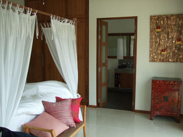 The villa consists of two buildings, both one storey for privacy, and cannot be over-looked. The main building has a large living area with a huge wooden vaulted ceiling, a dining area and open plan kitchen with breakfast bar. The master bedroom has an en-suite with sunken bath, inside shower and a private outside shower. The second bedroom is extremely spacious and also en-suite.