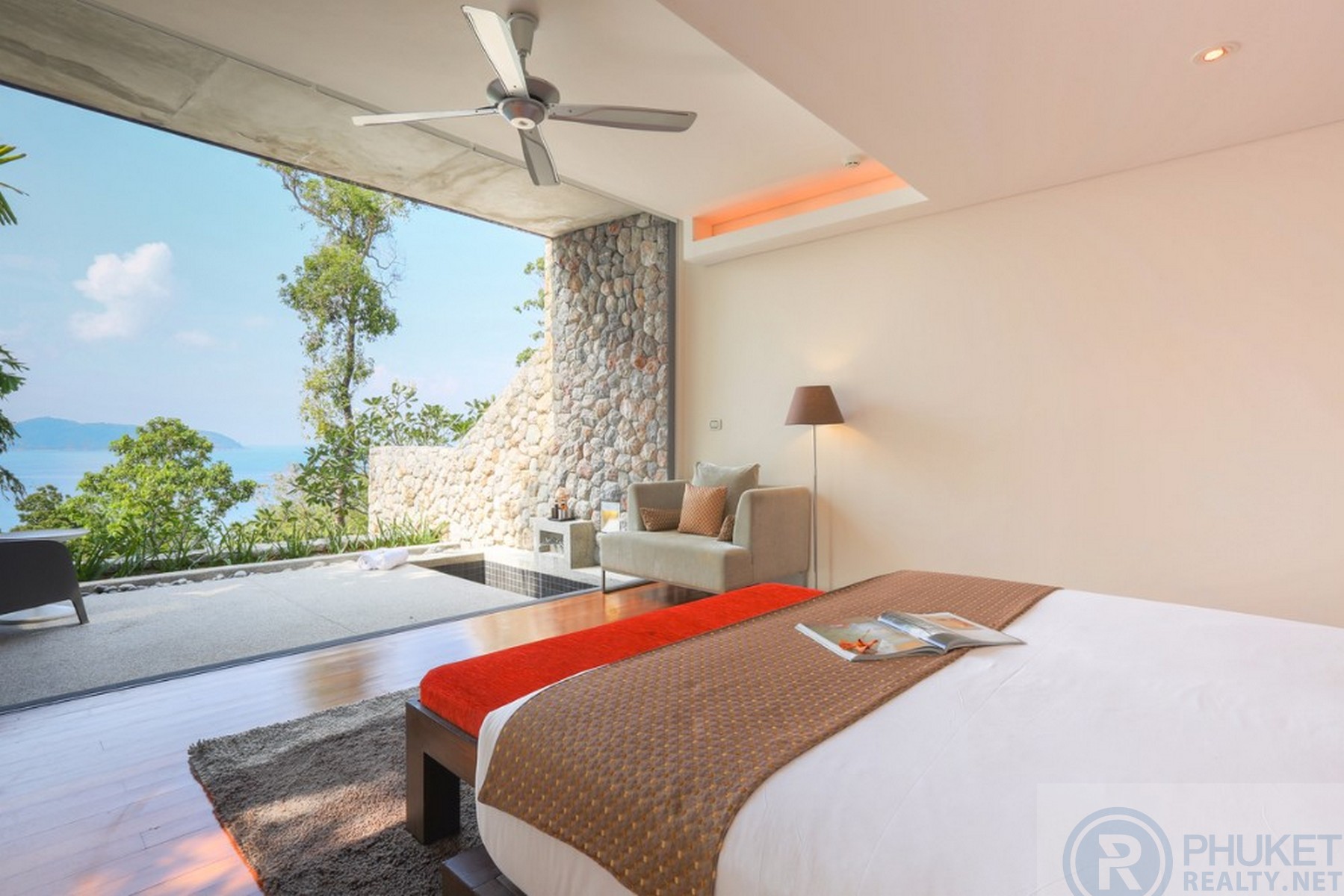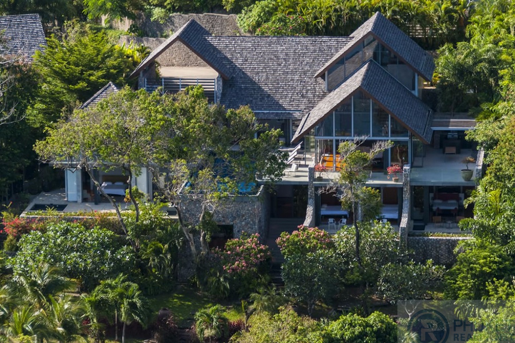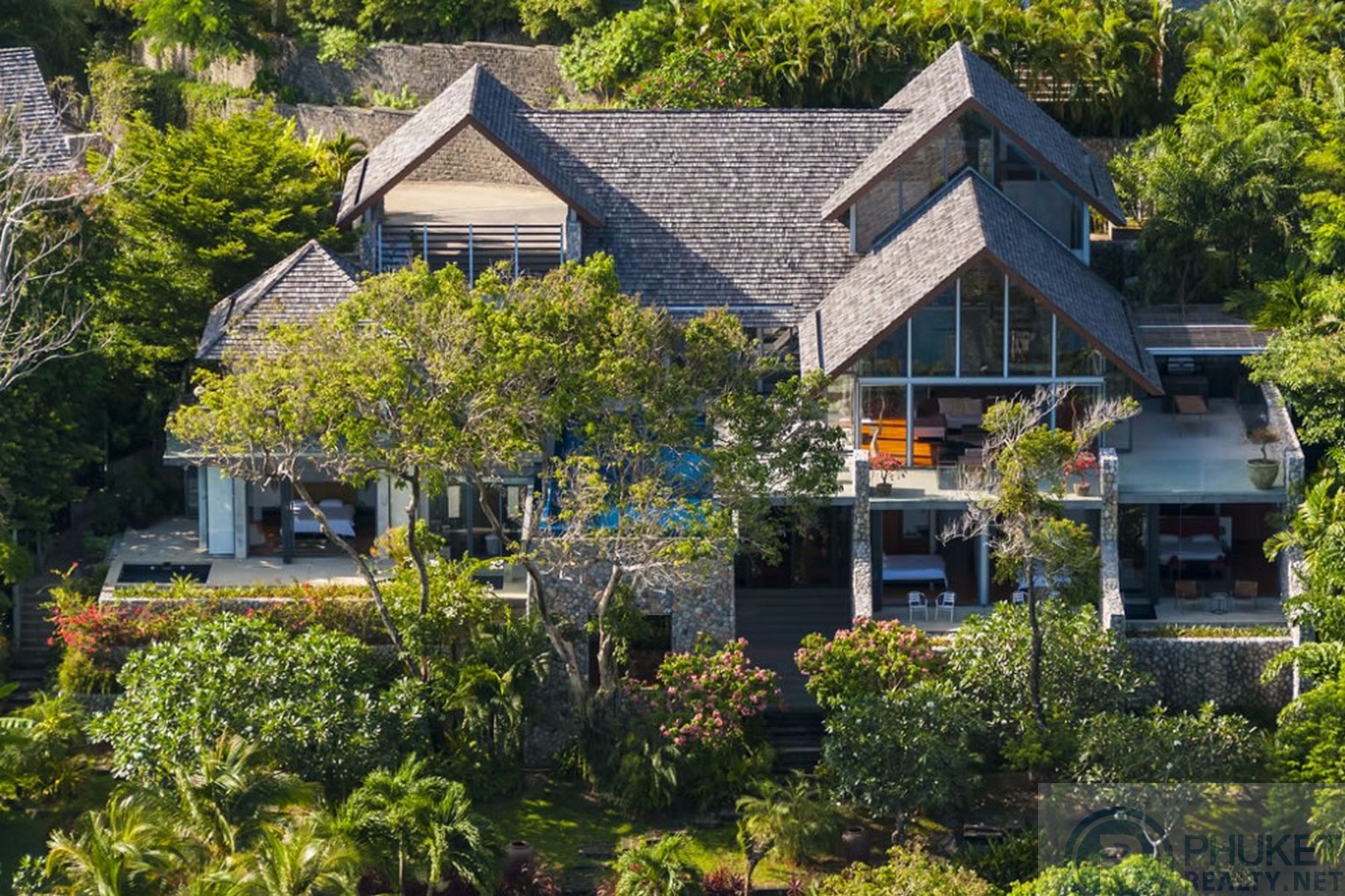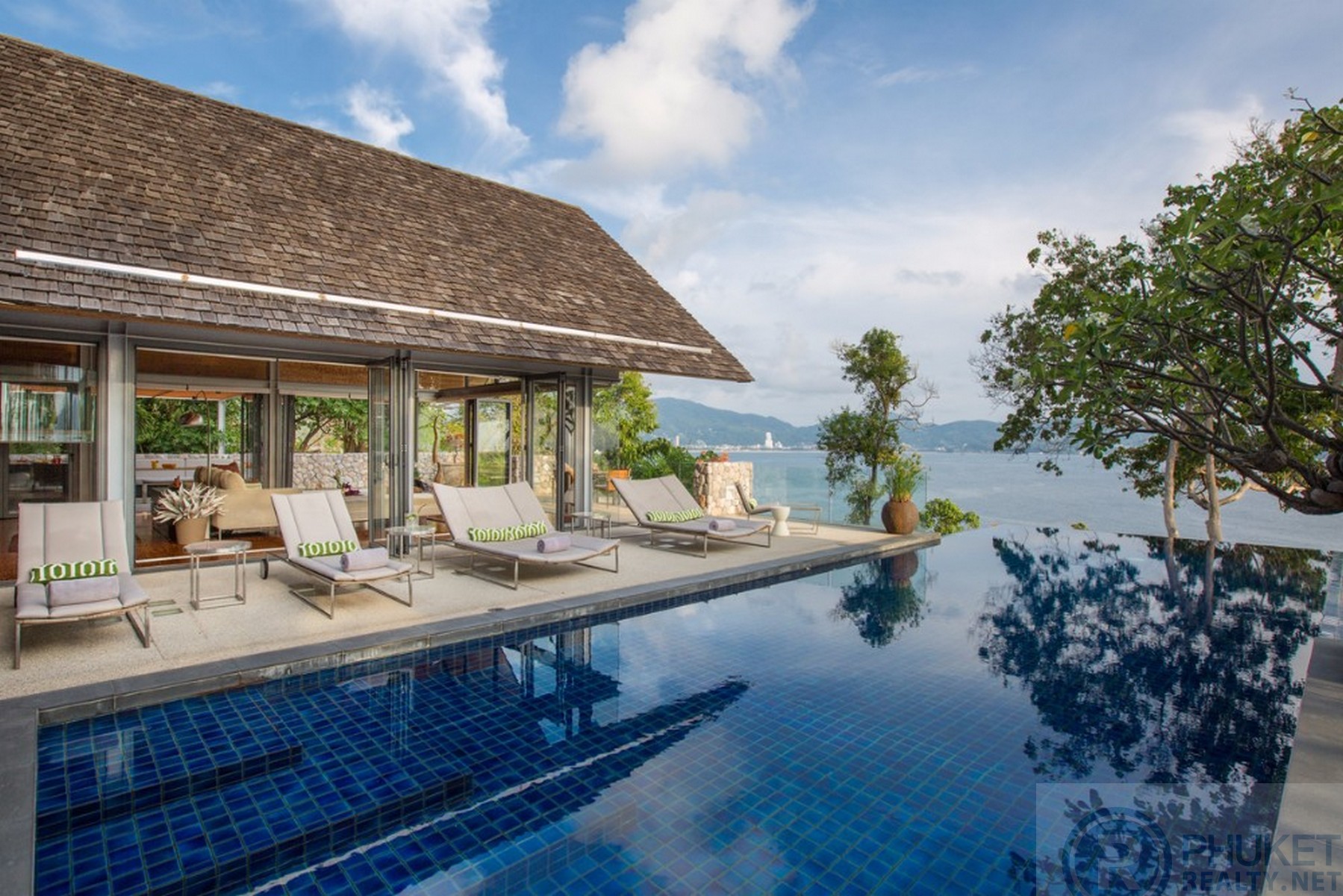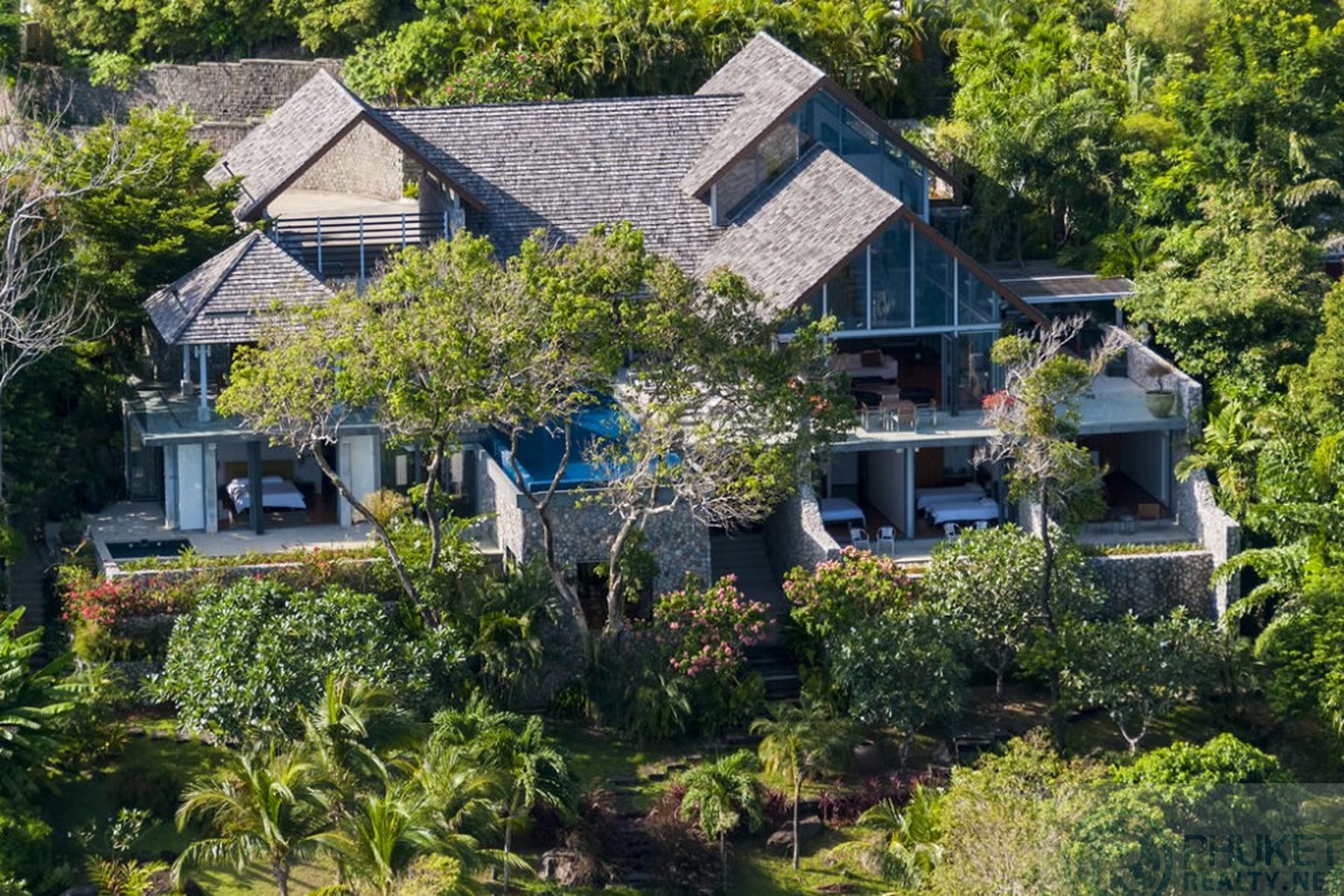 It is direct Oceanfront, has a 4,000 Sq.m garden with lawns and access to the ocean in addition to the 1,000+ Sq.m villa plot. From the villa, you will see sunrise and sunset as well as open ocean, Patong bay and Patong Beach viewsThe villa style is contemporary Asian by architects, Original Vision. With two main levels, integrated design for family livingwith a light and modern feeling inside.It has 6 ocean view bedrooms but can be expanded to 7 or even 8.Currently configured as 4 bedrooms and an ocean view office and large media room and yoga studioThe master bedroom suite has its own outdoor sea view jacuzzi and a second outdoor bathEach bedroom has its own terrace spaceThere are three ensuites, two bedrooms share a bathroom and the 6th bedroom ( now used as the media room, has a bathroom design which will be fitted to a buyers taste on transfer if required ) The living room has 6 m high vaulted golden teak line ceilings and all around floor to ceiling high quality bi fold anodised aluminium doors. Thus the whole area and front of the villa also can be opened up to the fresh air and allow direct terrace access.2nd, lower living area great for TV, Games, children etc.Large open plan ocean view, kitchen and dining roomWet and dry saunasPlenty of sun bed area around the 15m infinity edge swimming poolOutdoor barbecue and dining area large enough for 20 person seatingOutdoor dining / relaxing sala with 270 degree ocean and bay view’sThere are extensive staff quarters at the rear of the villa of over 100 Sq,m . These include a 2nd full western kitchen, staff bedrooms and common area, large laundry. The entire staff quarters access the main villa levels through their own private doorways so keeping guest privacy to a maximum.While there are many wonderful oceanfront villas on the market at any one time in Phuket, this is the only West coast oceanfront villa with a such a large usable garden in front of it, between the ocean and the villa. Over 4,000 Sq.m of combined lawns, trees and oceanfront. Perfect for events, relaxing and children to play.The Samsara estate is wonderfully positioned on its own headland overlooking the open ocean, Patong Bay and Patong Beach. It is private and secure and yet only 7 minutes’ drive to down town Patong and 12 minutes’ drive to Surin Beach.There is direct walking access to Nakalay and Blue Coral Beaches from internal estate pathways. Samsara owners enjoy preferential access and rates at the new 5 Star Naka resort on Blue Coral Beach.The estate has the most complete infrastructure of any Residential only estate in Phuket. It has its own one million litre water storage facility, two generators and fire hydrant system. There is a dedicated management office from which villas and the estate are maintained and rentals can be arranged. This villa has the best location in the estate, the largest and most usable oceanfront garden not only in Samsara but anywhere along the entire west coast. It is a modern, functional and well-maintained villa which is ready to move in immediately but also has the potential to enlarge with an additional two bedrooms if required.Offered at 4.8m USD with Thai Bath price adjusting to match the USD price