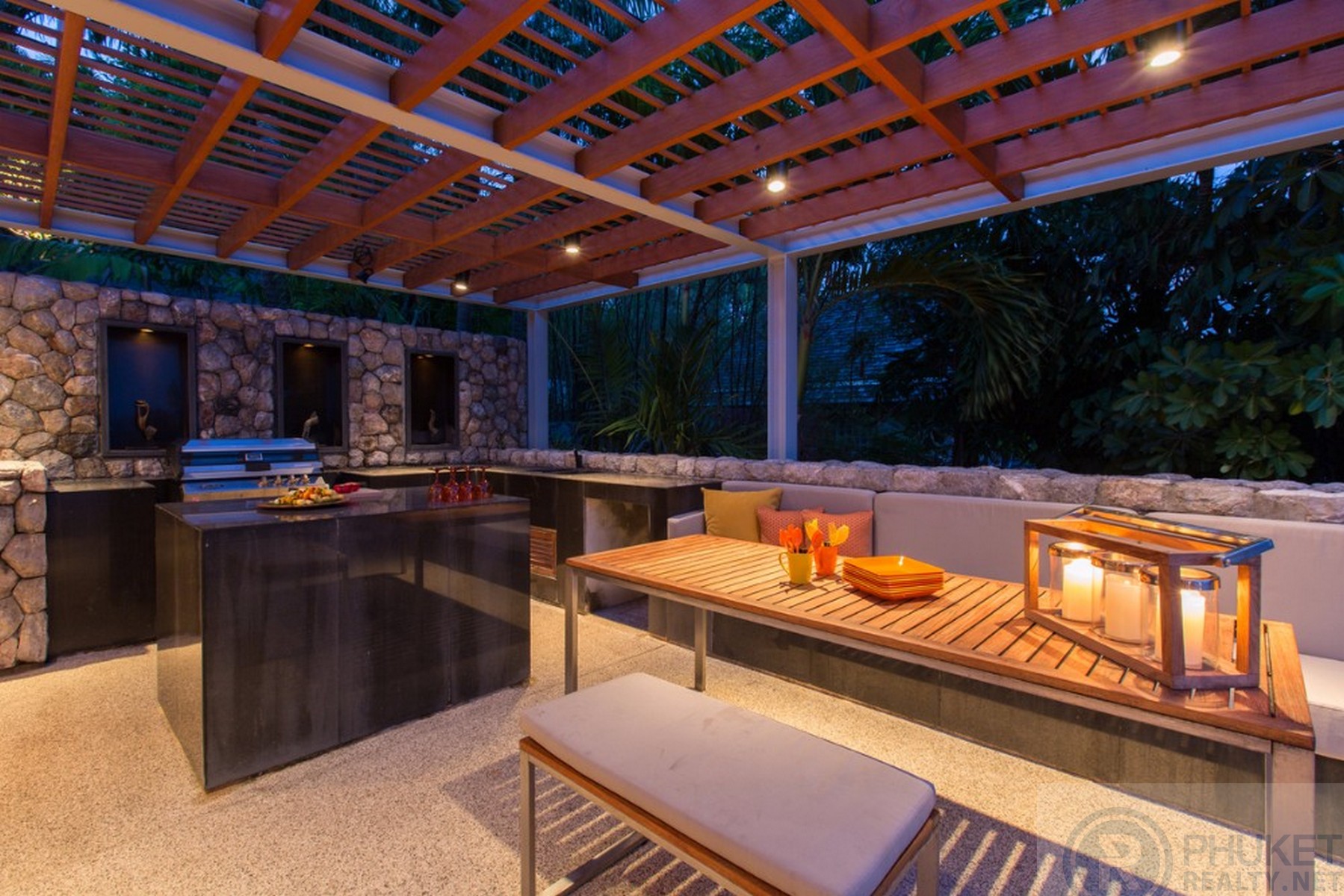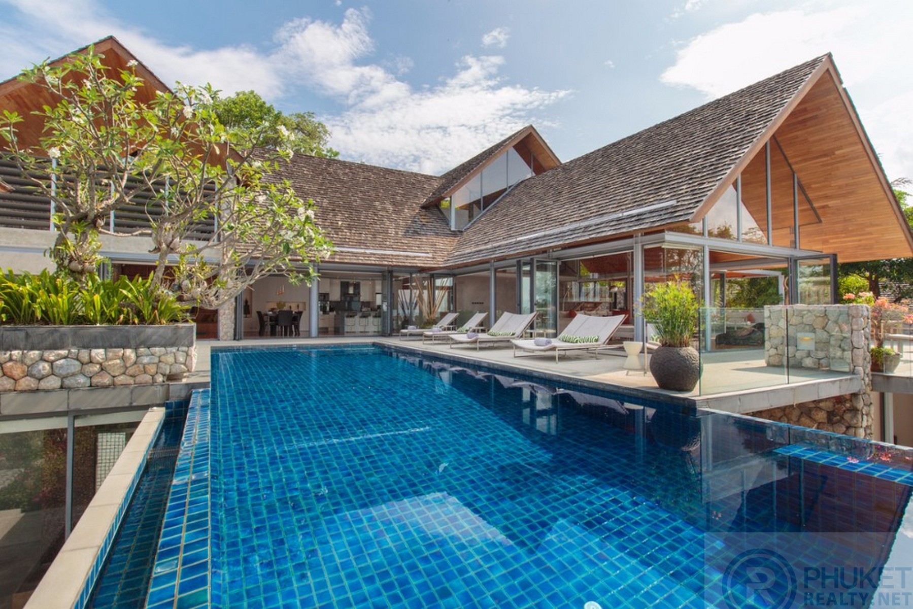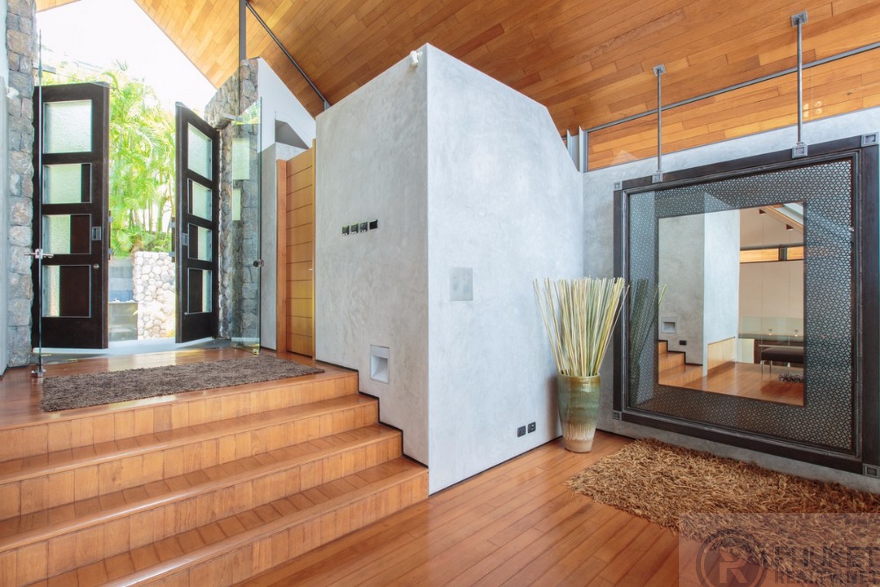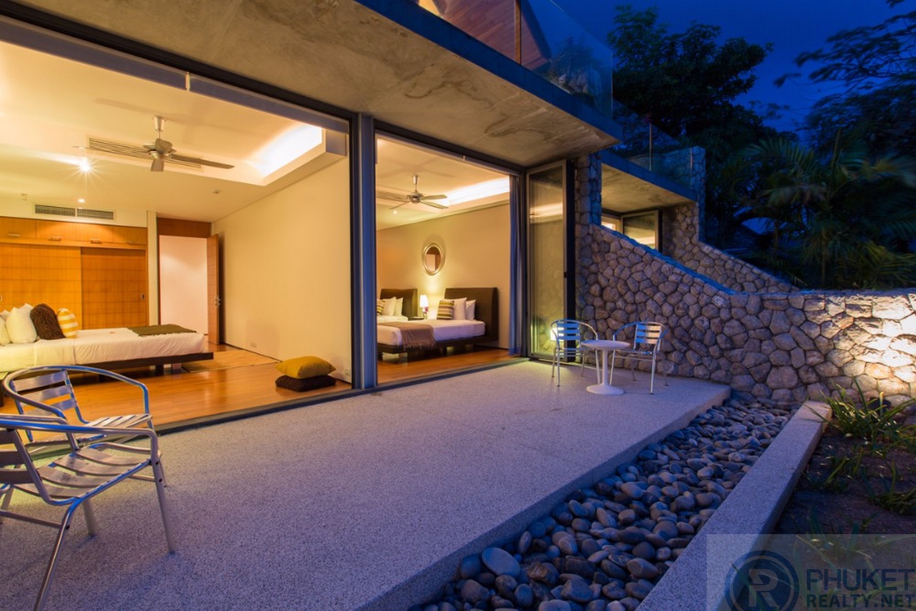 It is direct Oceanfront, has a 4,000 Sq.m garden with lawns and access to the ocean in addition to the 1,000+ Sq.m villa plot. From the villa, you will see sunrise and sunset as well as open ocean, Patong bay and Patong Beach viewsThe villa style is contemporary Asian by architects, Original Vision. With two main levels, integrated design for family livingwith a light and modern feeling inside.It has 6 ocean view bedrooms but can be expanded to 7 or even 8.Currently configured as 4 bedrooms and an ocean view office and large media room and yoga studioThe master bedroom suite has its own outdoor sea view jacuzzi and a second outdoor bathEach bedroom has its own terrace spaceThere are three ensuites, two bedrooms share a bathroom and the 6th bedroom ( now used as the media room, has a bathroom design which will be fitted to a buyers taste on transfer if required ) The living room has 6 m high vaulted golden teak line ceilings and all around floor to ceiling high quality bi fold anodised aluminium doors. Thus the whole area and front of the villa also can be opened up to the fresh air and allow direct terrace access.2nd, lower living area great for TV, Games, children etc.Large open plan ocean view, kitchen and dining roomWet and dry saunasPlenty of sun bed area around the 15m infinity edge swimming poolOutdoor barbecue and dining area large enough for 20 person seatingOutdoor dining / relaxing sala with 270 degree ocean and bay view’sThere are extensive staff quarters at the rear of the villa of over 100 Sq,m . These include a 2nd full western kitchen, staff bedrooms and common area, large laundry. The entire staff quarters access the main villa levels through their own private doorways so keeping guest privacy to a maximum.While there are many wonderful oceanfront villas on the market at any one time in Phuket, this is the only West coast oceanfront villa with a such a large usable garden in front of it, between the ocean and the villa. Over 4,000 Sq.m of combined lawns, trees and oceanfront. Perfect for events, relaxing and children to play.The Samsara estate is wonderfully positioned on its own headland overlooking the open ocean, Patong Bay and Patong Beach. It is private and secure and yet only 7 minutes’ drive to down town Patong and 12 minutes’ drive to Surin Beach.There is direct walking access to Nakalay and Blue Coral Beaches from internal estate pathways. Samsara owners enjoy preferential access and rates at the new 5 Star Naka resort on Blue Coral Beach.The estate has the most complete infrastructure of any Residential only estate in Phuket. It has its own one million litre water storage facility, two generators and fire hydrant system. There is a dedicated management office from which villas and the estate are maintained and rentals can be arranged. This villa has the best location in the estate, the largest and most usable oceanfront garden not only in Samsara but anywhere along the entire west coast. It is a modern, functional and well-maintained villa which is ready to move in immediately but also has the potential to enlarge with an additional two bedrooms if required.Offered at 4.8m USD with Thai Bath price adjusting to match the USD price