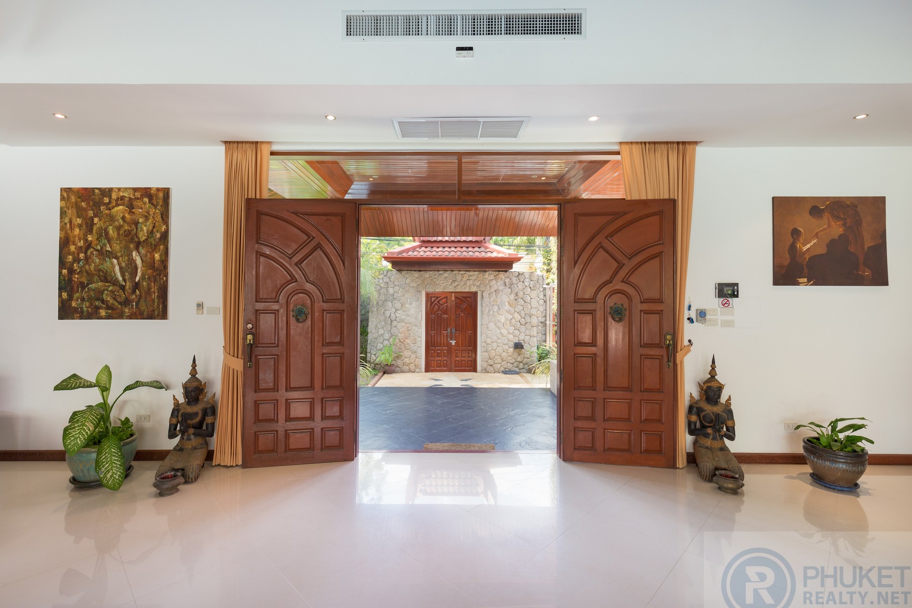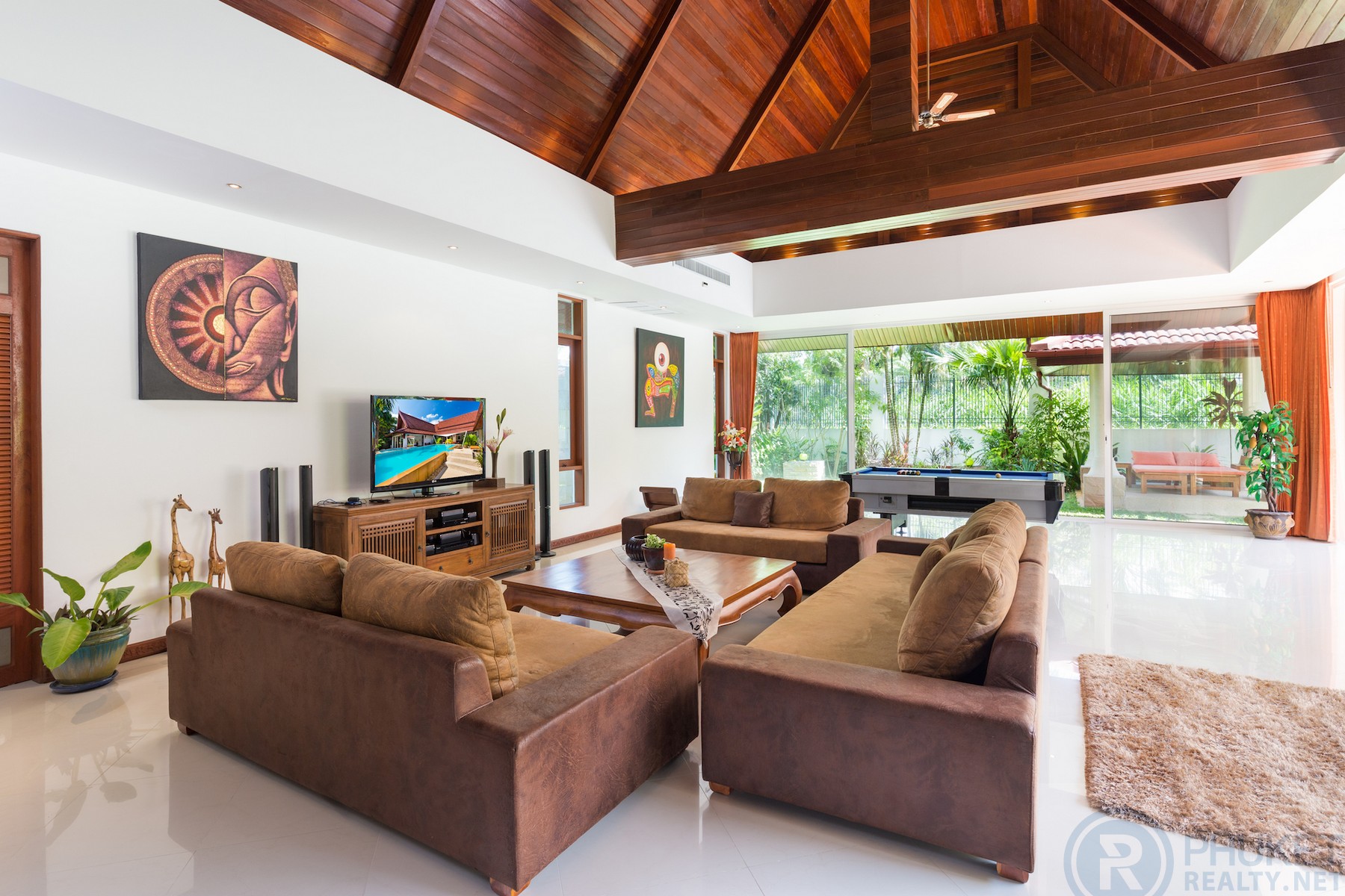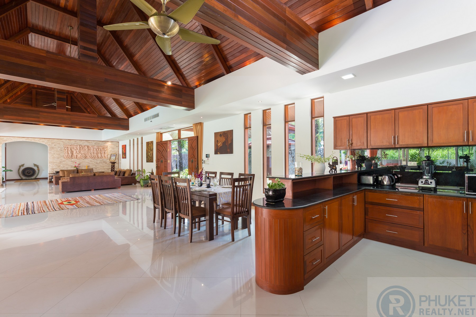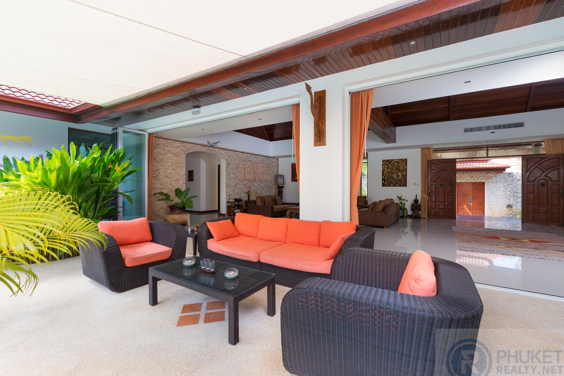 Beautifully maintained and presented U-shaped pool villa fronting onto Kathu Golf Course in the heart of the island. Easily accessible to all parts of the island.The villa is very accessible for International schools, Phuket’s main shopping centres and only 15 minutes to Marinas and Patong.The villa is in a bungalow style with distinctive vaulted Thai style roofing.The spaces in the villa are enormous with large open dining and twin living areas which open directly to the gardens and pool.Currently the villa is configured with 3 large bedrooms with private ensuite bathrooms. However, the design is such that the villa can easily be configured with 5 bedrooms all on the one level.The property is walled by a granite stone high wall which gives privacy and serenity to the villa itself.There is a twin car garage and space for two more cars in the parking area.Materials are all to a high standard, incising teak wood, easy to maintain ceramic tiling in the living areas and top-quality Sun Paradise window systems.The pool is the focus of much of the villa and has a built in jacuzzi at one end with separate massage and dining sala at the font of the villa on the other side of the pool.Currently owned by Thai Freehold of the 1,200 Sq.m land plot and foreign freehold of the villa structure.