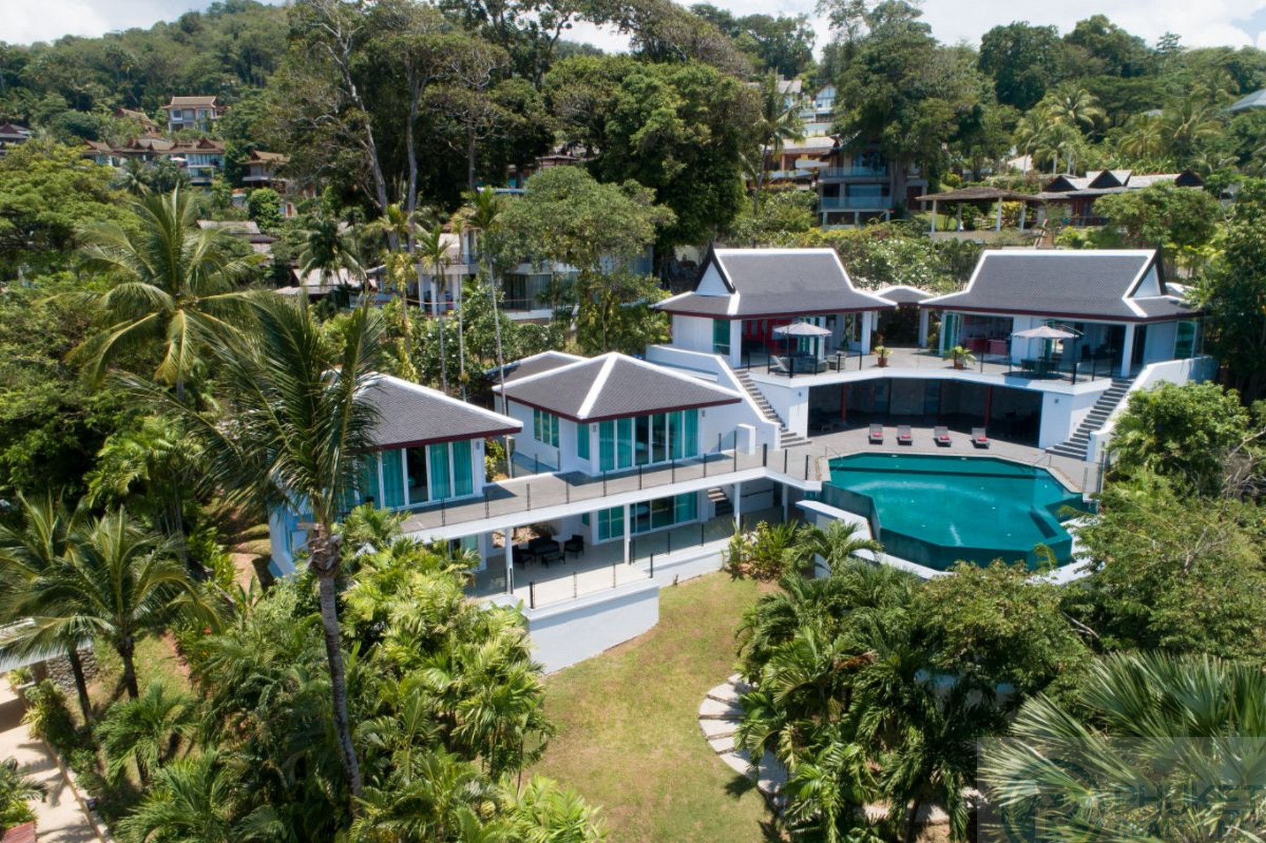 This stunning property is located front and centre of the Ayara Surin Estate, on the beautiful and tropical West coast of Phuket.Villa is a refreshing take on the typical Ayara architecture. The current owner completely renovated the property and gave this villa a whole new modern look and functionality.Villa occupies 1,452 sqm of chanote titled land, experiencing breath-taking panoramic seascapes along Surin Beach and to the Amanpuri headland, with a North Western aspect.The villa itself, has five large bedrooms and seven bathrooms across three-stories. Interior space is 750 sqm, with a total of 1,200 sqm of constructed area.Entrance LevelEntry to Villa is via the Ayara Estate, through the 24-hour security and to the gated driveway to the two-car covered parking. This level comprises of two main pavilions, one contains a fully functional Western kitchen and formal dining room, the other is a comfortable living room. Outside, a huge sun terrace provides an excellent place to relax, top up the tan and take in the stunning views.Middle LevelTwo large private master bedrooms, each with en-suite bathrooms and super king size beds and amazing views across the freeform swimming pool and on to the Andaman Sea.Next to the pool, there is a large, covered terrace. With cool breezes and ceiling fans, this is the ultimate place to relax and take it easy.Lower LevelThree more en-suite bedrooms, plus a shady lawn area and tropical gardens. In the midst, a Thai styled ‘Sala’ where one can escape and relax.RentalWe firmly believe Villa One would make an excellent rental investment. Due in part to the layout, villa size, and convenient location.OwnershipVilla is owned freehold via a Thai Limited Liability Company. As the Thai Company holds both house and land, the owner would much prefer a share sale rather than an asset sale. This preferred sale would be relatively quick and low-cost.