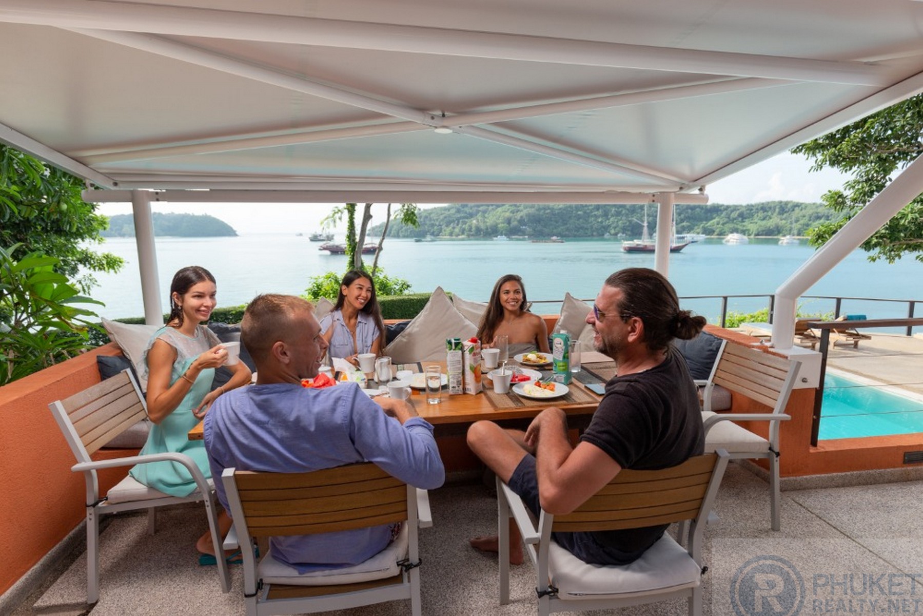 Headline Information:Renovated: 2020House SQM: 740 sqmLand SQM: 928 sqmBedrooms: Five Swimming Pool: 14 x 5M Parking: Driveway for Three CarsOwnership:Freehold Building & Land: Via Thai LLCGuide Price: 79 Million Thai BahtOcean’s Edge DescriptionWraparound ocean surrounds this oceanfront villa headland 'Ocean's Edge' is a Thai-Bali styled 5-bedroom, 5-bathroom oceanfront villa, in a small private headland development.The villa has been extensively modernised and refurbished in 2020.The Villa is made up of 4 separate pavilions, a large pool and expansive sandwich deck surrounded by tropical gardens and large trees.Interiors are finished with a mix of large sized, light coloured ceramic floors tiles and natural stone, large, free sliding, high quality, Sun-Paradise windows and doors, with a selection of original artworks and antique furniture from throughout Asia. All this gives a very sophisticated and comfortable atmosphere to the Villa.The whole Villa is air-conditioned and with views of the pool deck and the sea.The living and deck areas have integrated sound systems for entertaining + Apple TV with movie library in all bedrooms and main living area.There is a fully equipped kitchen and appliances are of a high standard (Smeg).There is a nice casual outdoor sala, and a more formal indoor dining area.There is a dedicated massage therapy room.The villa has maids’ quarters should an owner wish to have live in staff.