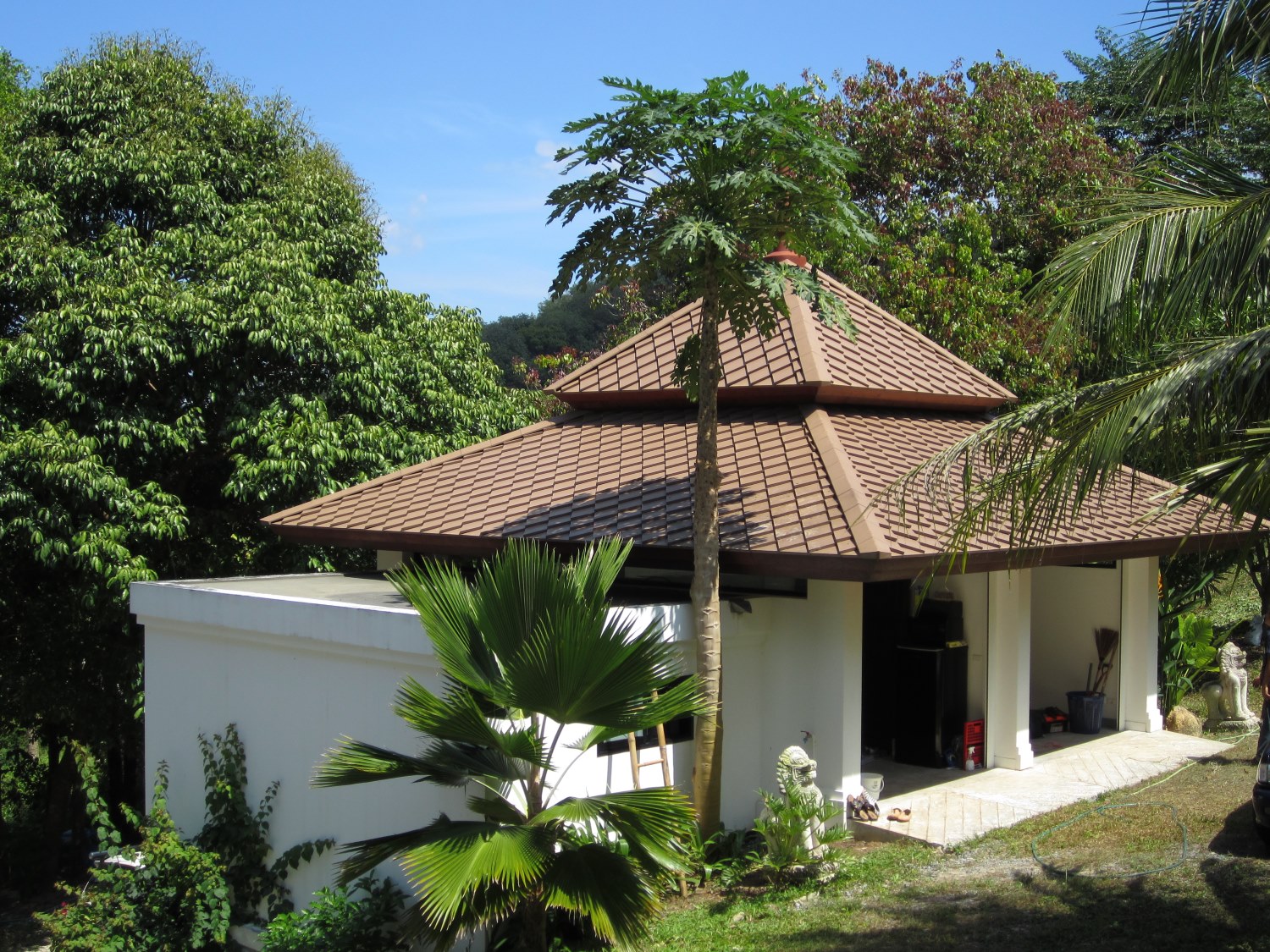 Modern Thai Style Villa with 3 Storeys on big plot of 1089 sqm with landscaped garden and lots of natural shade. Chanote Title / Freehold Ownership.