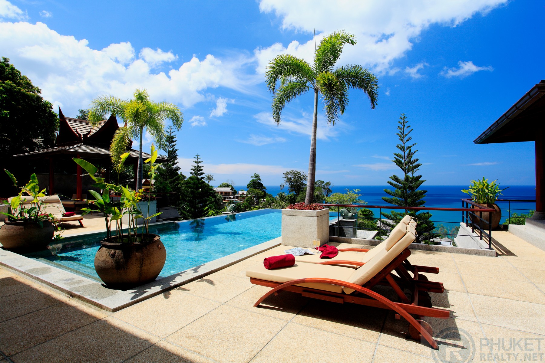 A highly desirable and private, tropical villa set in the Surin hills with panoramic sea views. It is likely to be one of the most sought-after private villas available in Surin, due to its excellent location, large size price that is well below replacement cost.The villa benefits from a very functional layout set over three levels. The central theme is oriented towards an alfresco lifestyle but maintains both formal dining and entertainment pavilions.With dramatic high cathedral ceilings, there is a feeling of expansive space that is reinforced by breath-taking panoramic views overlooking the sea and Amanpuri.The villa is set on a hillside in good sized grounds of over 2,400sqm. There is 1,632 Sq.m of built villa and 1,270 Sq.m of enclosed and underfoot area.The villa features both formal and informal indoor and alfresco living areas, six large guest bedrooms, with en suite bathrooms, twin kitchens, twin maids’ quarters for easy main staff and any accommodation, especially large storage areas, a garden, twin parking and of course a fantastic pool with surrounding terrace space for entertaining and open-air salsa for dining, relaxing and massage, all overlooking the beautiful Andaman sea and Surin beach.Taking the levels and rooms in greater detail:Entrance to the property is through a either a private gate or the electronically controlled gates to the covered double car park. To the left of the first entry gate there is a private garden area.The upper floor of the villa is the more formal area and is home to a substantial living room, which has not only spectacular sea views, but a rich, highly polished wood floor and a cathedral-style, wood-lined ceiling, with fans. This pavilion has floor-to-ceiling windows on all four sides, each with access points. There are chairs and a matching sofa with an emphasis on comfort, and a large flat-screen TV for added relaxation.The dining pavilion is to the left of the living room and also has a vaulted ceiling and fans. Furnished with a long table, perfect for entertaining, which more than comfortably seats eight, the views to the horizon are exquisite.To the rear is an immense, extremely well-appointed kitchen. There are extensive polished-wood cabinets, with a black marble countertop, and encompassing a central island which is split to provide a breakfast bar to one side, and ample preparation space on the other.The equipment includes a dishwasher, 6-ring hob with overhead extractor hood, an integrated microwave, a large integrated oven and a substantial cabinet fridge/freezer. To the rear is a further Thai kitchen, which is also fully equipped with a dishwasher, both a gas and electric hob and wide extractor hood, an in-built deep-fat fryer, microwave and large fridge freezer. This additional kitchen is excellent for entertaining or for pungent Thai cooking.The master bedroom is to the right, with a vaulted ceiling and fans, it has a pedestal bed positioned to take advantage of the views. Behind is a large room, split to accommodate on the right side, a spacious dressing area, complete with extensive wardrobes and drawers, as well as a vanity unit. And on the left, is a well-appointed en-suite, with large Jacuzzi bath, walk-in shower, and twin wash basins, with large mirrors above and additional storage below.The private terrace at the front of the room is covered and has a roller blind to allow use of the area whatever the weather.The mid-level is accessed via either a spiral staircase, or a standard stairwell next to the dining room. Descending the spiral staircase, the area at the bottom has a waterfall feature to the left, whilst the right sides give access to the immense entertainment area. This has a cool, marble floor, ceiling fans and a fully equipped bar at one end with a drink’s fridge, high-top bar and stools. The half-shuttered windows to the left all open to allow the through breezes of the fully open area to the front of the villa.The other end of this room has a large flat screen TV but can be used as a further dining area if required.To the left of the bar is a second bedroom. This has a wall of French windows to the front for maximising the sea views, extensive fitted wardrobes and drawers, and an en-suite bathroom with walk-in shower.To the right of the TV area, there is a convenient cloakroom equipped with a separate w/c, a glass shower cubicle, hanging space and drawers plus a steam room.Next to this is a third bedroom. This is a duplicate of the master bedroom above, with the exception of the private balcony.All this accommodation looks out onto the large, infinity-edge swimming pool. This has lovely waterfall features to either side which extend two storeys and provide a gently trickling backdrop.There are two salas; the one to the left of the pool is set up as a dining area, with fitted wooden bench seating and a large central table, whilst the one to the right has a big Jacuzzi bath with inset seats, sufficient for 8 people. Both these areas offer sublime views across the bay, by day or night and make for excellent entertainment venues.Stairs lead down to the lower level from either side of the pool, and on the turn, each has a good-sized storage room to accommodate the pool furniture. To the left is a large guest suite, comprising an extensive dressing area to the left, a well-appointed en-suite with Jacuzzi bath,
