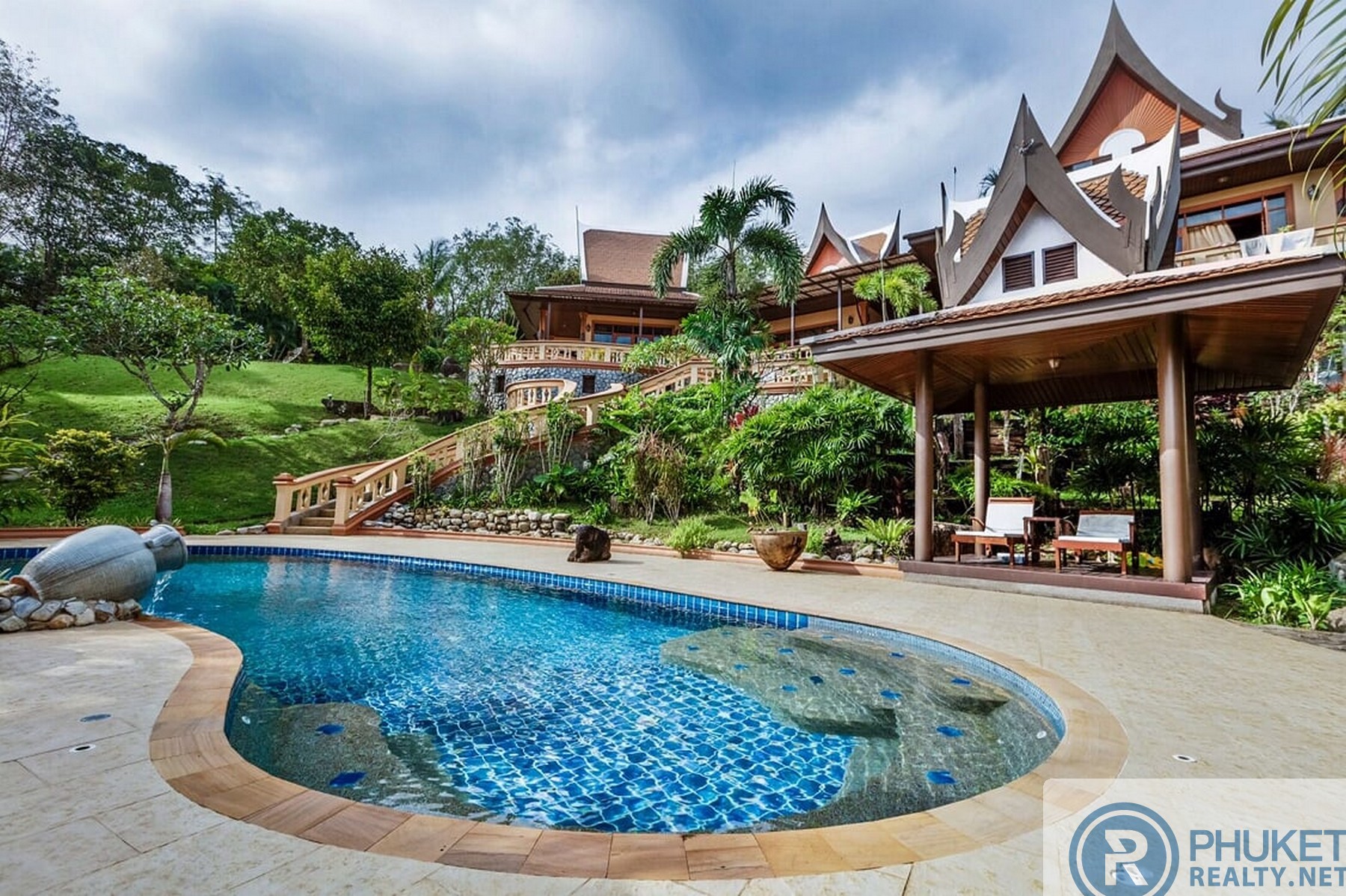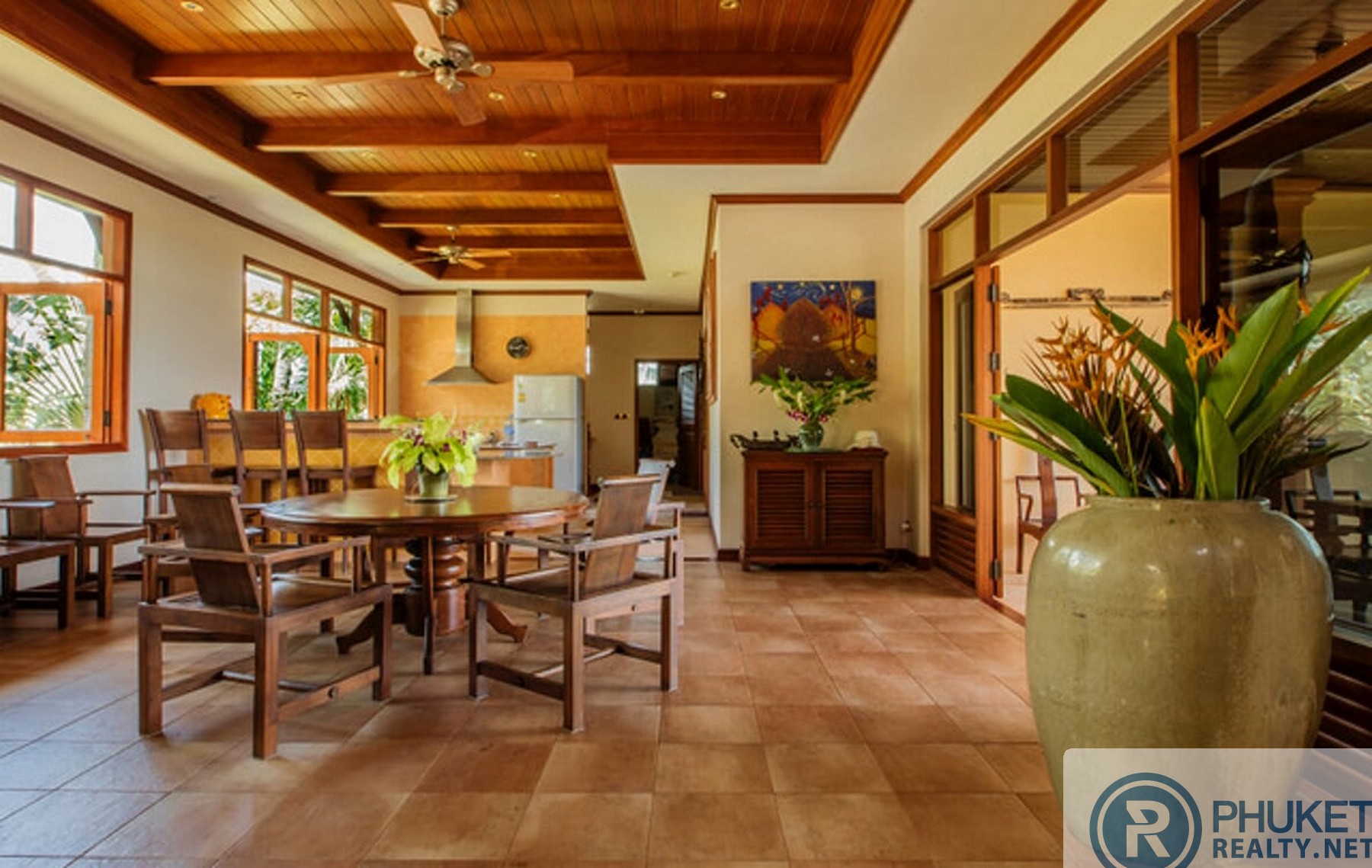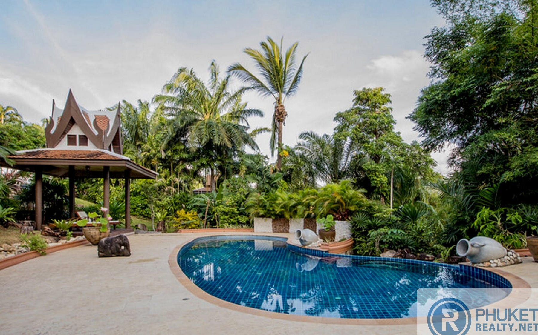ol Luxury Thai-Style Villa at Layan Beach Phuket This is an extraordinary and unique villa, located in a sout facing of Layan, area that gives you a beautiful view onto the valley and also the sea, distantly surround by 5 other Luxury villas the properties is being watch by security company 24/7, you will have access to the big private pool and a beautiful g garden garden to enjoy the most beautiful beach of Phuket, only a few minute walk away as well as an opportunity for golfing, Nice restaurant service national and international foods area to be found only 2 minute drives distance.This special property offered 7 bedrooms and 8 Bathrooms (Tub and showers) 3 are dining areas both inside and out side a spacious living room (flat screen)and a well equipped kitchen. Also you will find a washing machine, dryer WLAN and parking area available, we guarantee a lovely well maintain property which is secondary residence to the present owners.We can also help with your individual request for e.g.a Private chef, a house keeper, chauffeur or shuttle service to/back at the airport (13km distance)